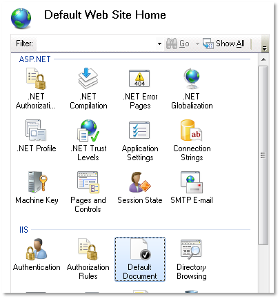 The installer will also add the default documents such as index.cfm and index.jsp depending on options chosen. You can make manual changes to this using the “Default Document” feature of IIS
